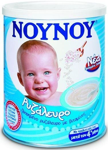 Το προψημένο ρυζάλευρο ΝΟΥΝΟΥ με βιταμίνες χρησιμοποιείται με τη συμβουλή του παιδιάτρου, απευθείας στο μπιμπερό με γάλα ή για την παρασκευή χορτόσουπας, κρεατόσουπας και ψαρόσουπας.