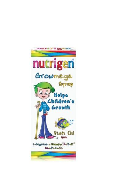 Το nutrigen Growmega Syrup είναι ένα ιχθυέλαιο, εμπλουτισμένο με βιταμίνες και μεταλλικά στοιχεία που συμβάλλουν στην υγιή ανάπτυξη των παιδιών. Η μοναδική του σύνθεση, ενισχυμένη με το απαραίτητο αμινοξύ L-Arginine, συμβάλλει στην ενδυνάμωση του σκελετικού συστήματος. Έχει ευχάριστη γεύση, χωρίς τη δυσάρεστη οσμή των ιχθυελαίων, που καθιστά δύσκολη την πρόσληψή τους από τα παιδιά.