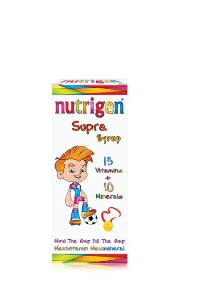 Οι βιταμίνες και τα μεταλλικά στοιχεία συμβάλλουν στην υγιή ανάπτυξη των ιστών και είναι σημαντικά για τα παιδιά που παρουσιάζουν ταχείς ρυθμούς ανάπτυξης. Το nutrigen Supra Syrup είναι ένας μοναδικός συνδυασμός 13 βιταμινών και 10 μεταλλικών στοιχείων που παρέχει όλα τα απαραίτητα μικροθρεπτικά συστατικά για τις ιδιαίτερες ανάγκες ανάπτυξης των παιδιών.