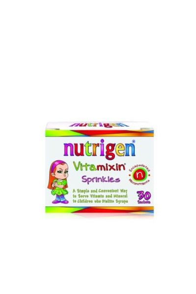 Ένας απλός και εύκολος τρόπος για να δώσετε βιταμίνες και μεταλλικά στοιχεία στα παιδιά που δεν συμπαθούν τα σιρόπια. Ένα φακελάκι nutrigen Vitamixin Sprinkles αναμειγμένο σε ένα γεύμα του παιδιού είναι ικανό να καλύψει τις ανάγκες του σε βιταμίνες και μεταλλικά στοιχεία απαραίτητα για την υγιή ανάπτυξή του.